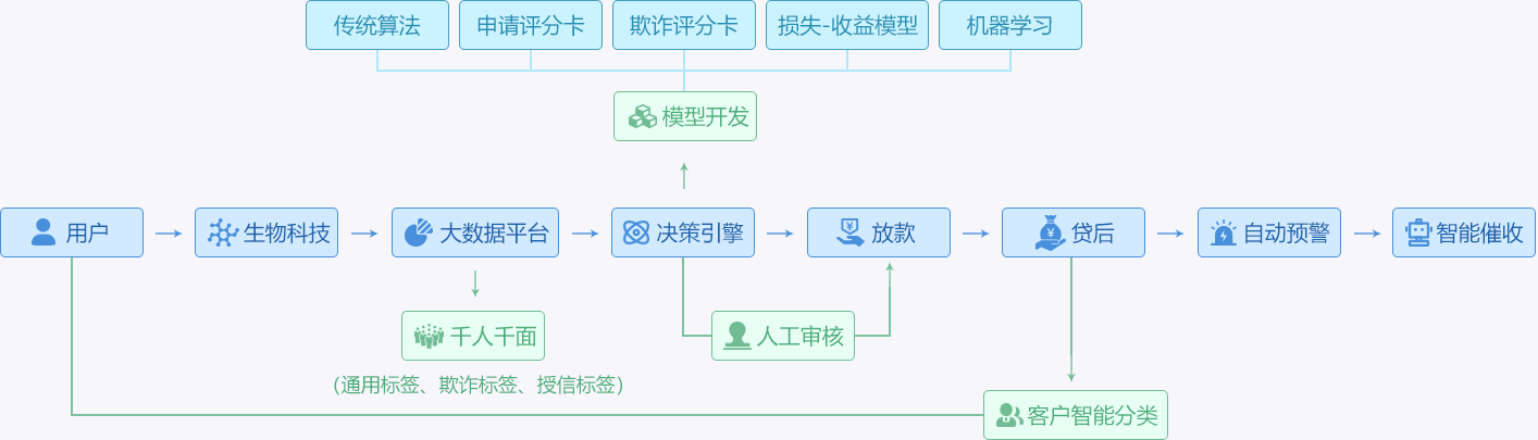 主要用在贷款前风控审批,仅需申请人三要素,方式简单,能实现快速对接、快速使用。该系统可在银行客群上有较好的排序性,能降低整体通过客群风险。